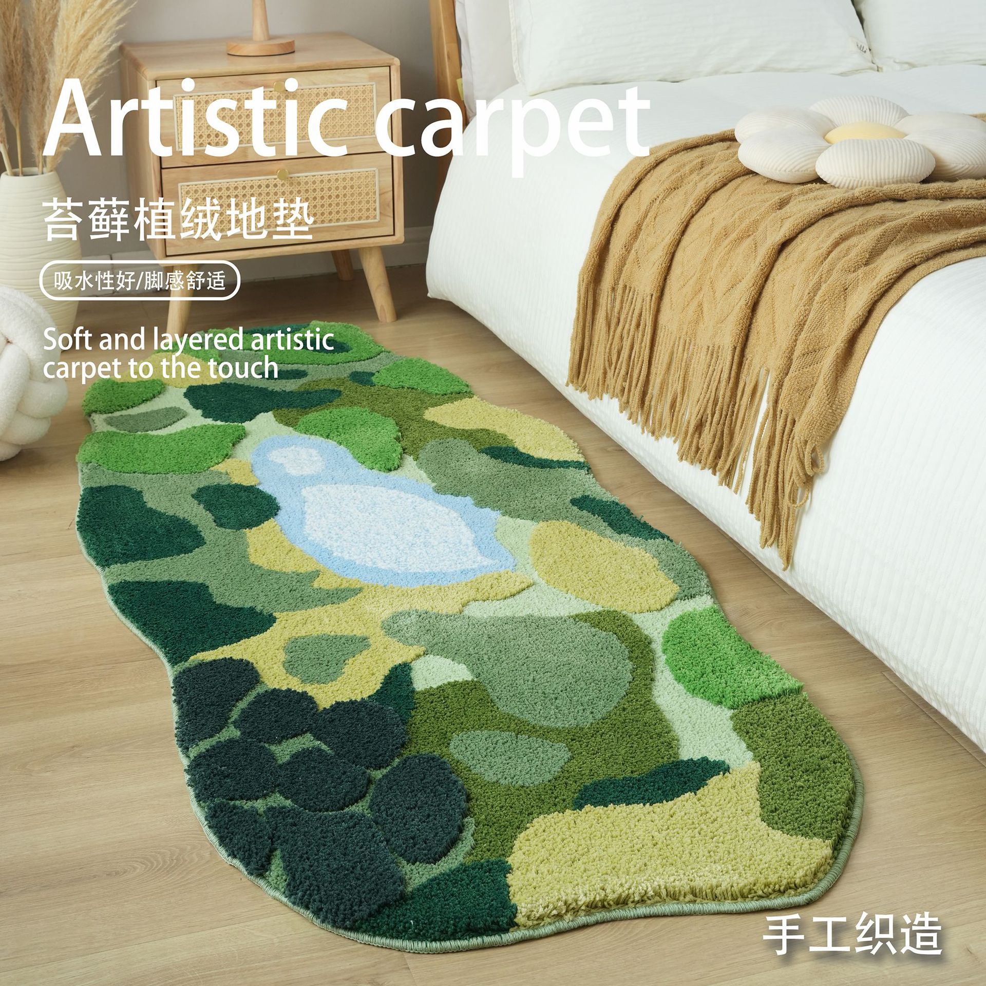 苔藓地毯北欧卧室床尾异形房间毛绒床边毯客厅轻奢风加厚绿植地毯