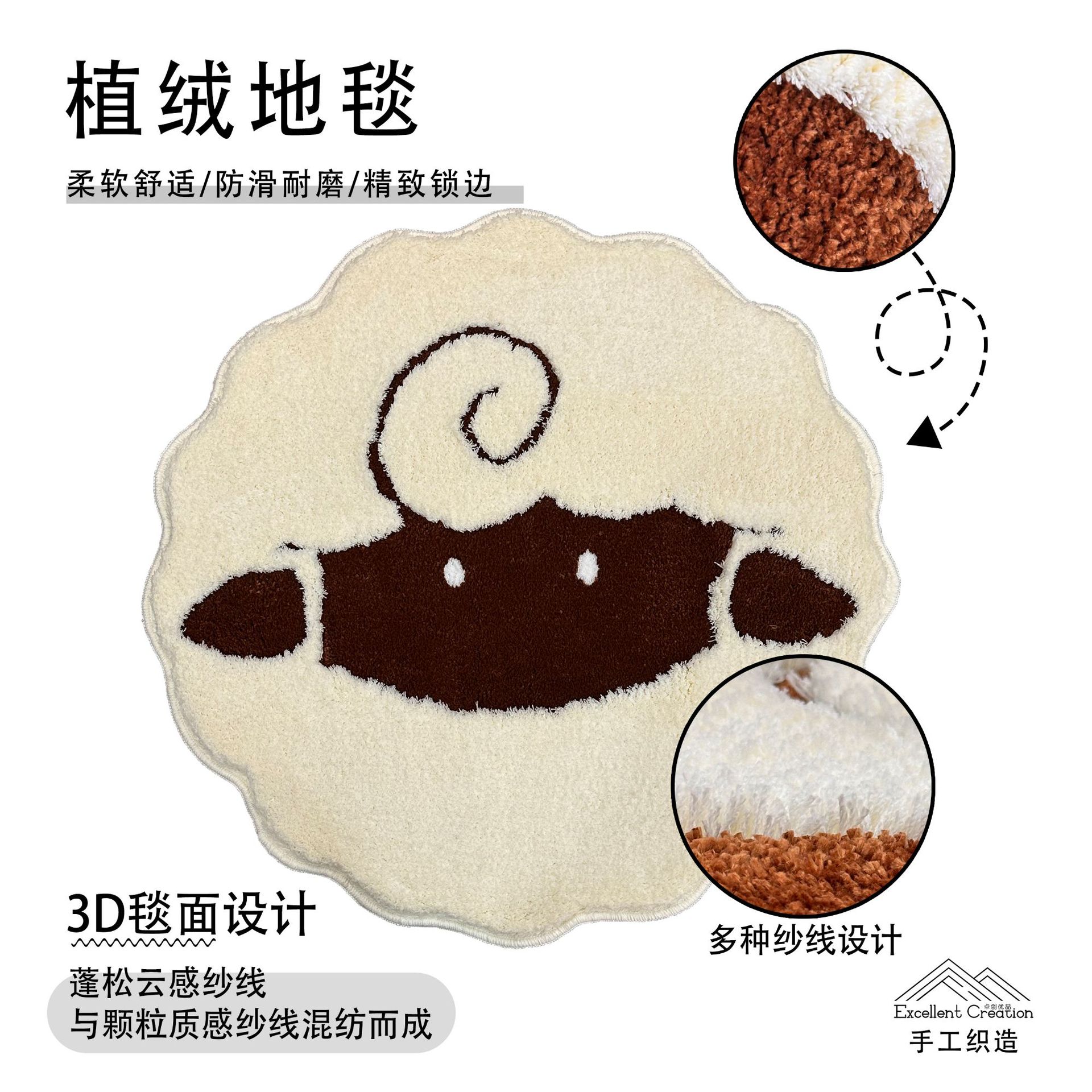 多巴胺儿童房客厅地垫圆形可爱卧室凹凸植绒地毯加厚可水洗床边毯