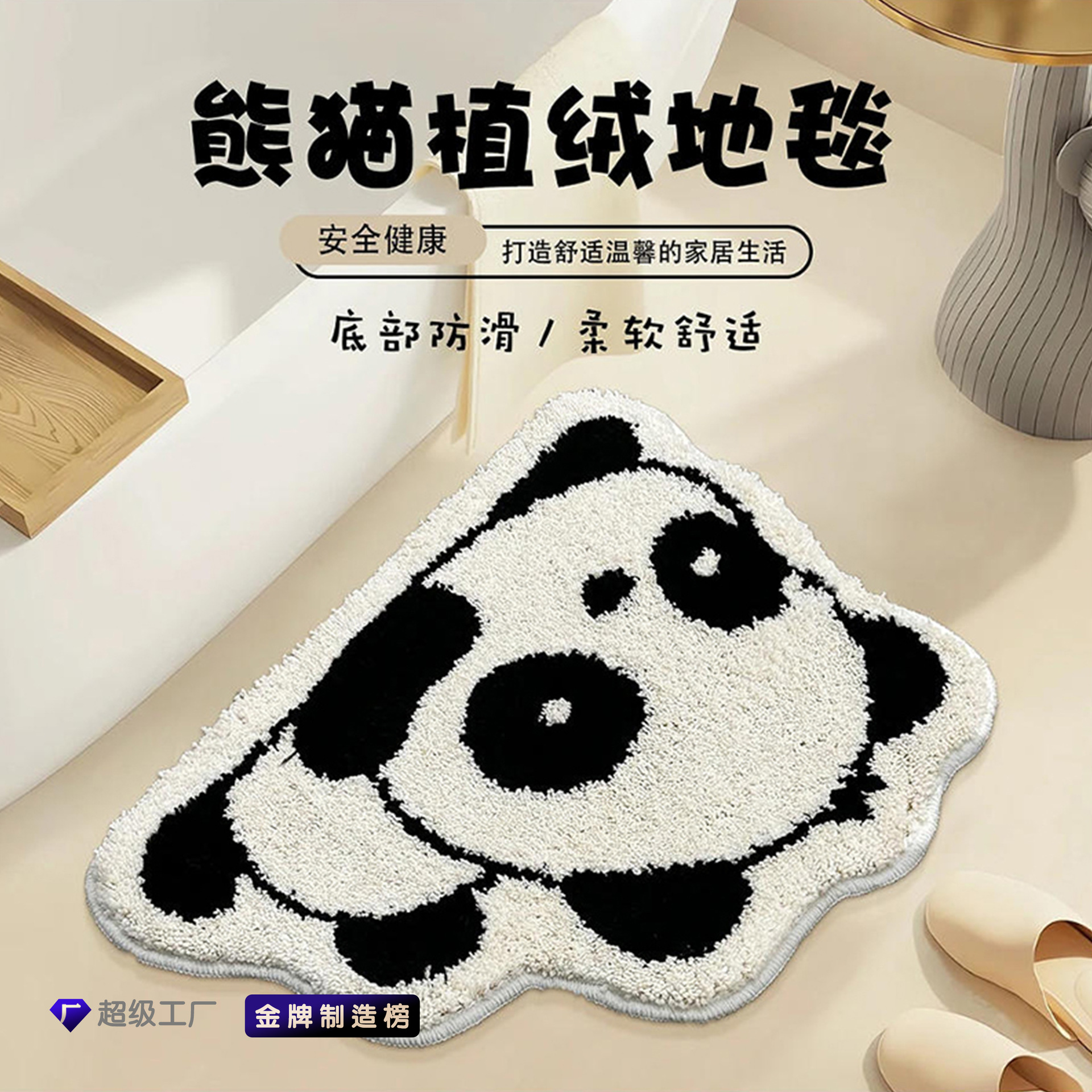 簇绒可爱熊猫植绒地毯儿童房间地毯四季通用卡通动物卧室地毯