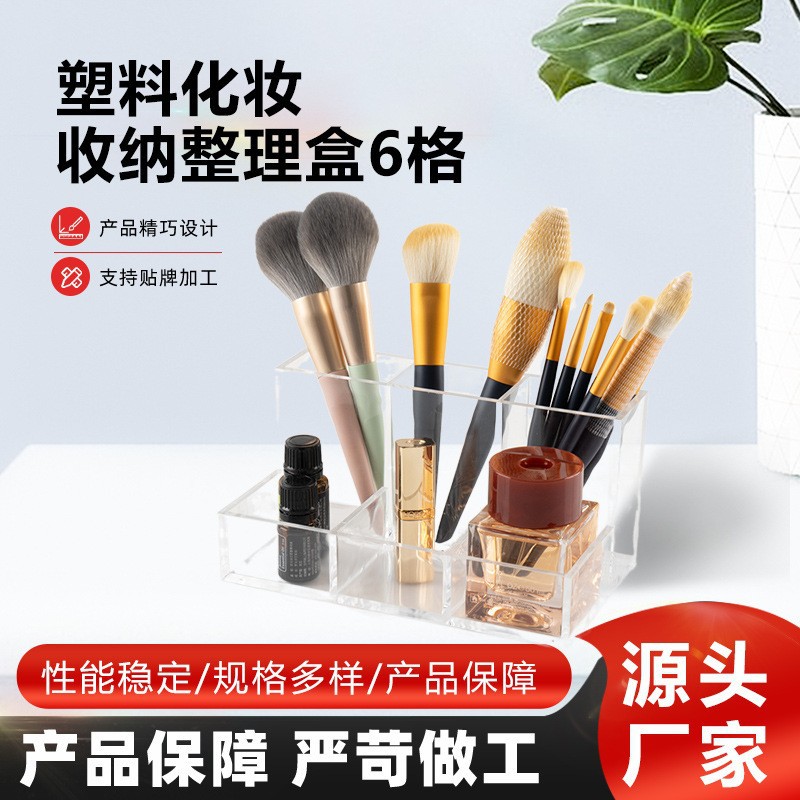 透明多格塑料化妆收纳盒亚克力桌上文具收纳盒化妆刷眉笔收纳工具