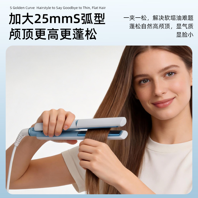 跨境批发直发卷发两用弧形夹多功能负离子不伤发熨板电卷发棒神器
