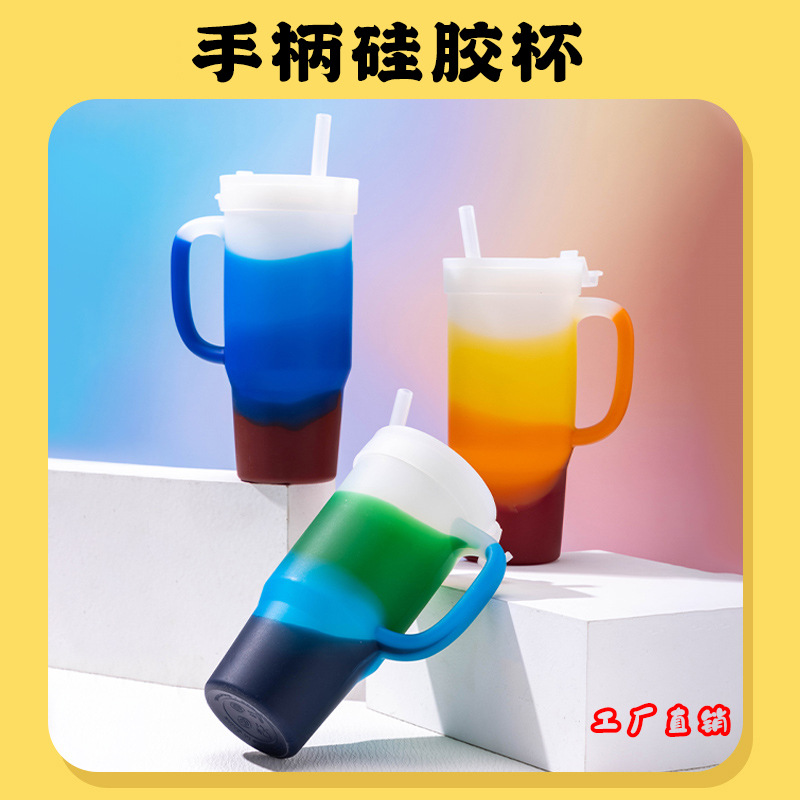 跨境新款硅胶水杯28oz大容量手柄杯耐摔简约便携啤酒杯可印logo