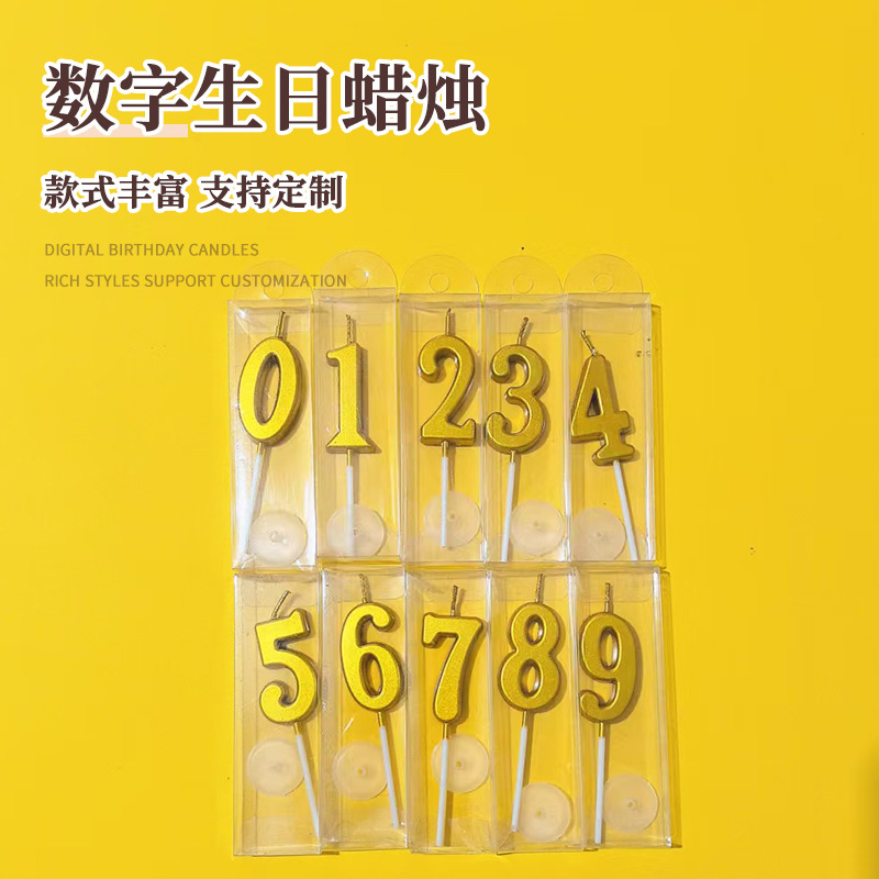 金色数字烘焙蜡烛生日派对装饰插件蛋糕厂家批发发光