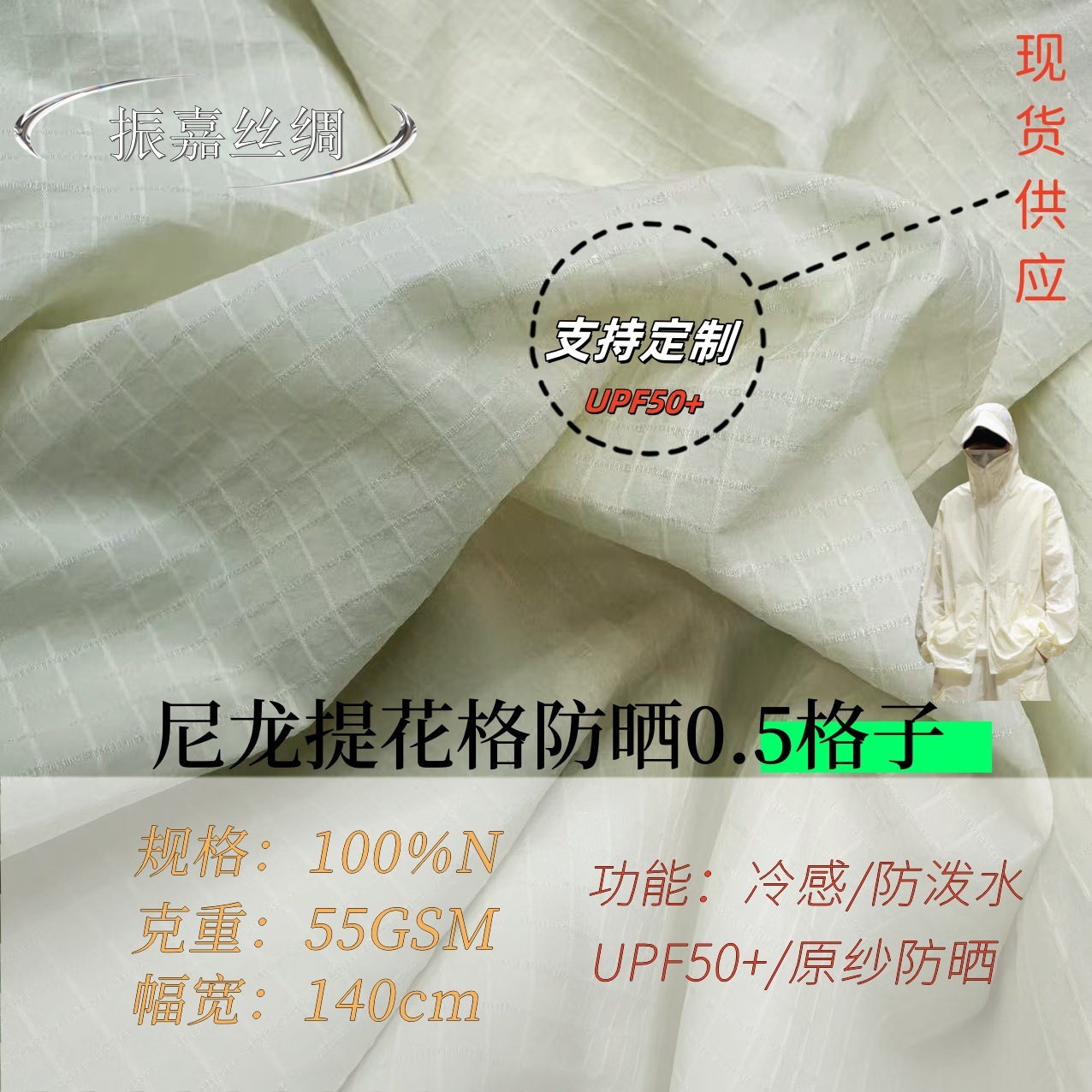 尼龙格子防晒面料0.5提花格原纱防晒紫外线50+防泼水春夏轻薄贴肤