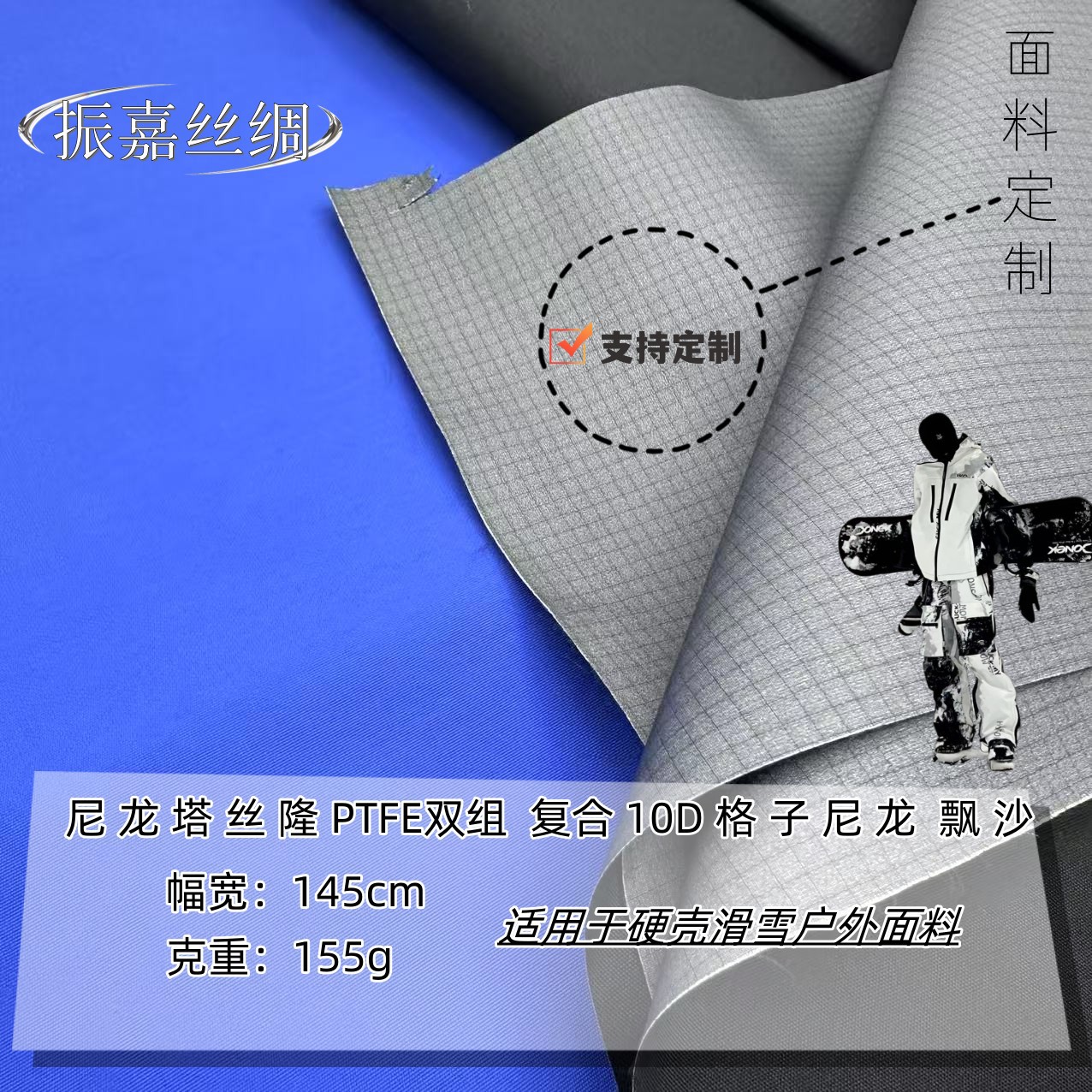 尼龙塔丝隆PTFE双组复合尼龙飘纱三合一硬壳户外三防功能性面料