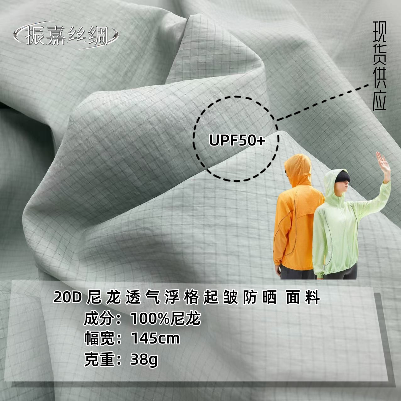 20D尼龙格子防晒面料紫外线UF50防晒衣亲肤透气浮格尼龙皱面料布