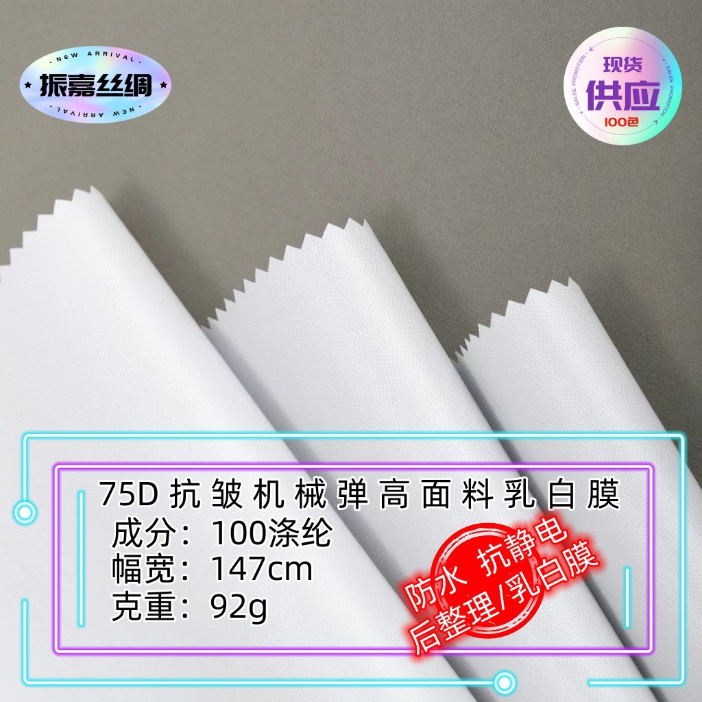 75D高弹春亚纺平纹面料抗皱防水乳白膜羽绒棉服派克服冲锋衣登山