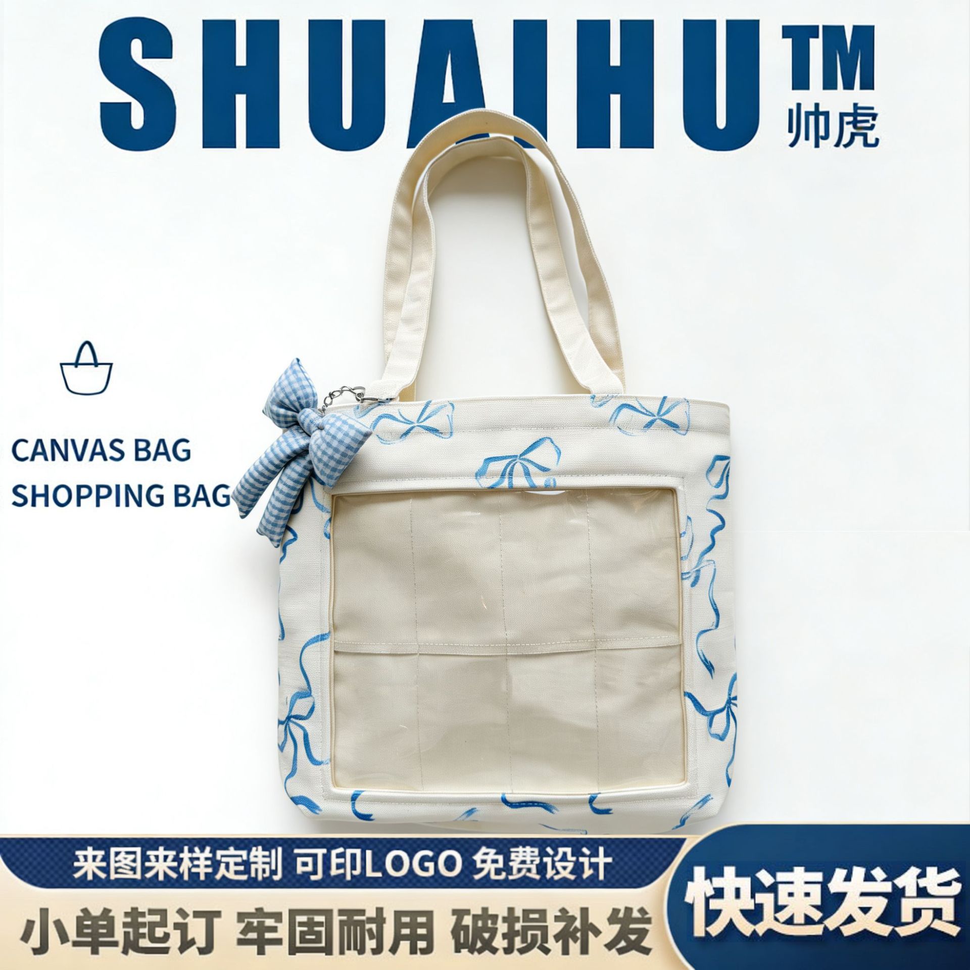 手提帆布袋定制印花蝴蝶结帆布包学生上课通勤单肩帆布袋定制简约