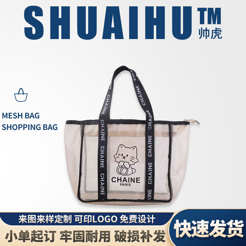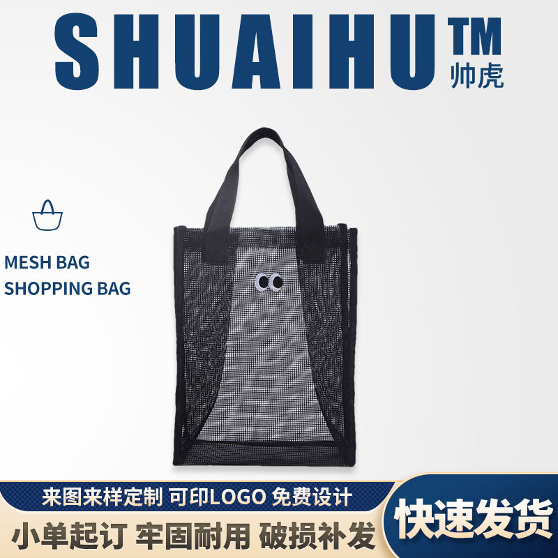 大容量镂空网纱手提袋定制尼龙沙滩包通勤可爱单肩手提网布袋定制