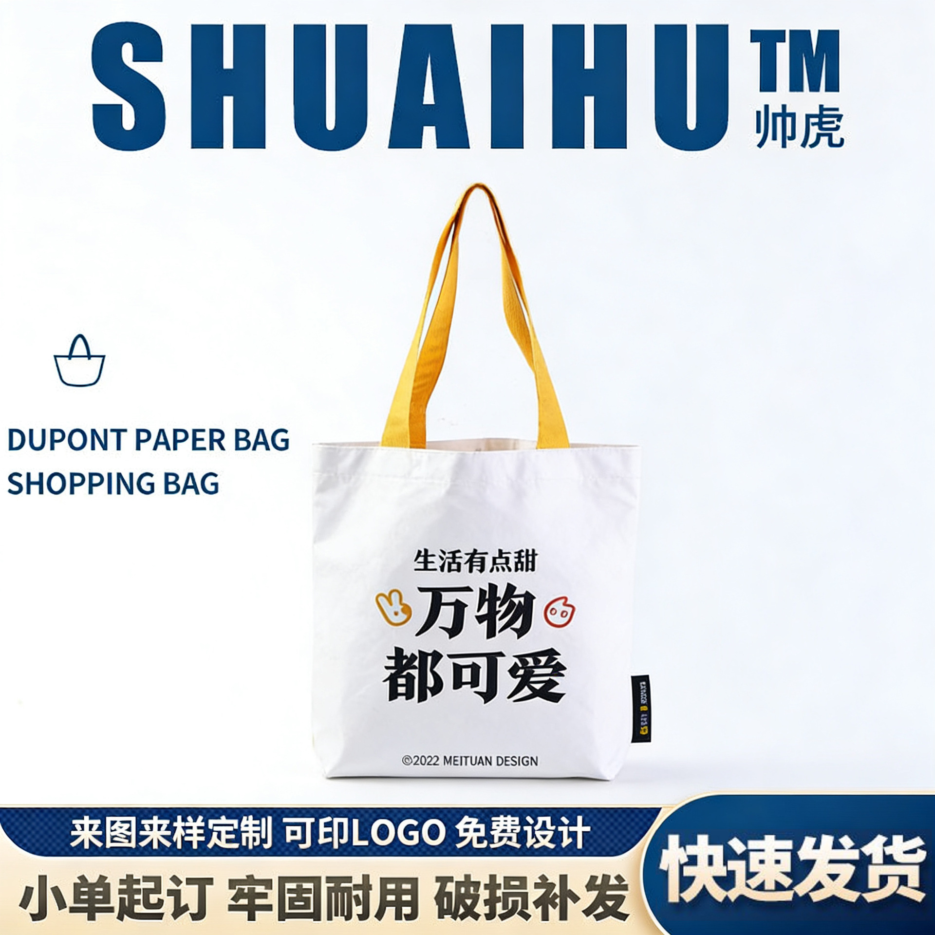 杜邦纸袋定制可水洗褶皱牛皮纸袋潮流单肩手提杜邦纸购物袋定做