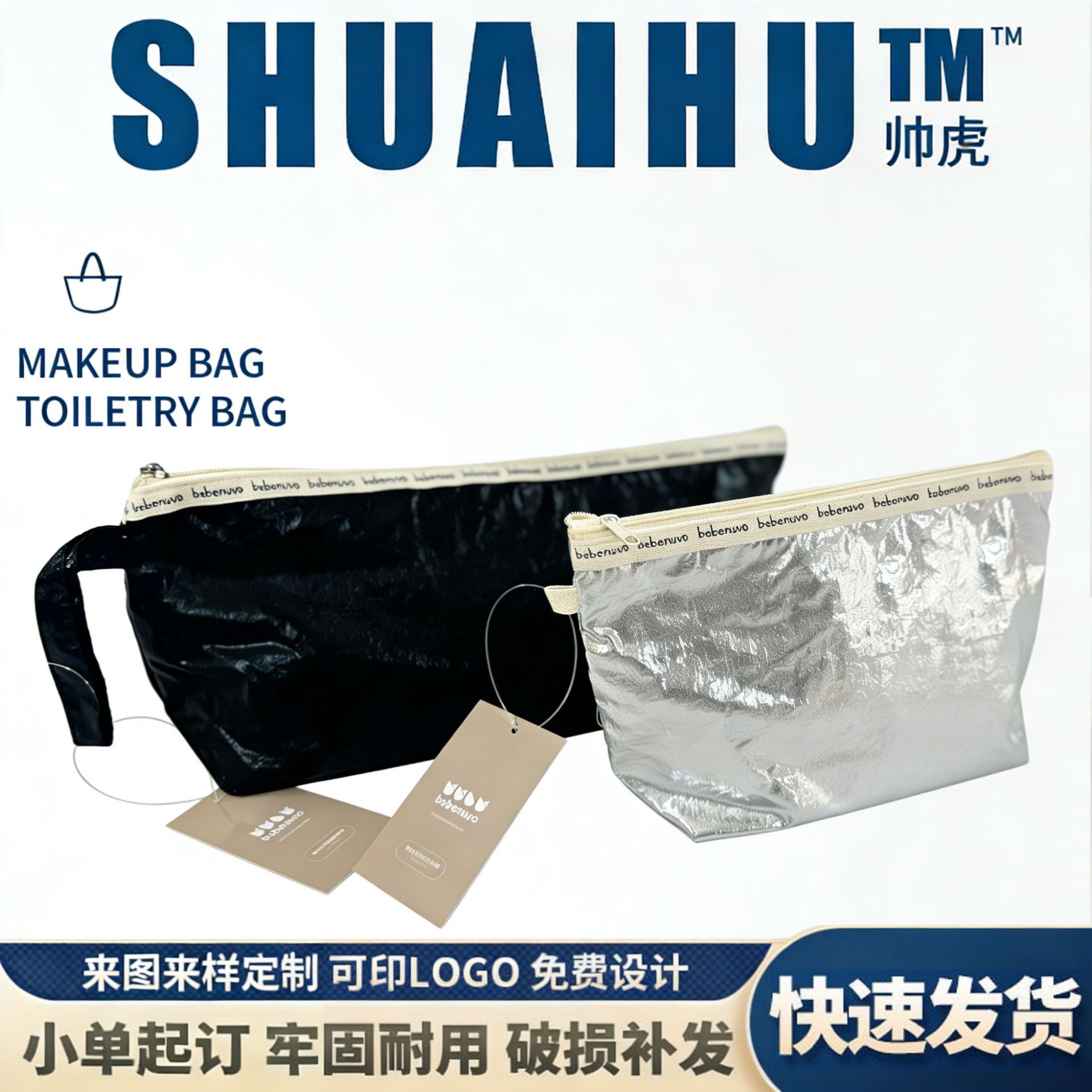 褶皱化妆包亮面闪光包定制拼接印刷手提logo可定制简约时尚手提包
