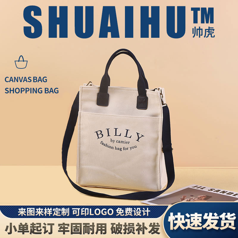 手提帆布袋定制学生棉布袋简约大容量通勤斜挎帆布包帆布袋定制