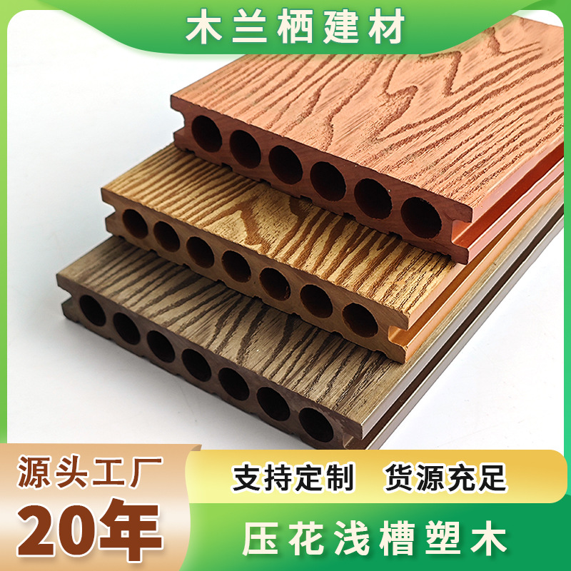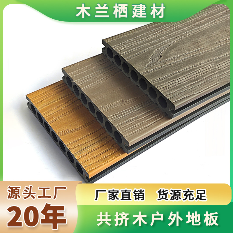 塑木地板厂家第二代圆孔共挤木地板防腐木栈道阳台户外木塑板