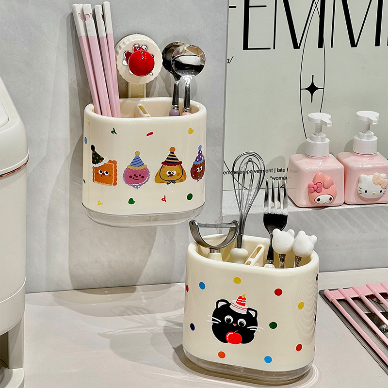 奶油风筷子筒置物架壁挂台面两用免打孔厨房餐具收纳勺子筷子笼