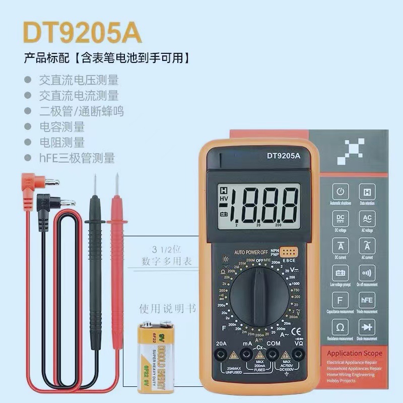 DT9205A万用表数字高精度智能多功能电子数显测电表