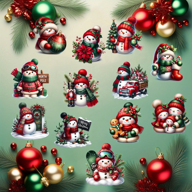 跨境新款红色雪人木质吊坠套装圣诞树装饰品节日家居和窗户装饰