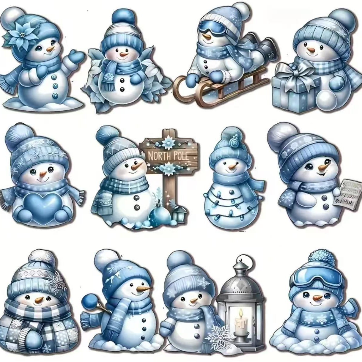 跨境热卖蓝色雪人木质挂件圣诞树装饰品节日家居和窗户装饰
