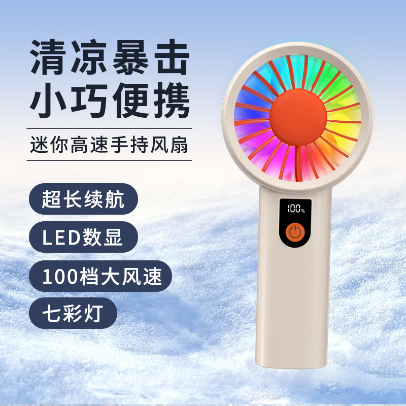 2026新款手持风扇户外风扇带七彩LED灯便携式小风扇高速风扇