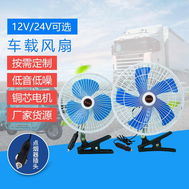 大货车车载风扇带夹子电扇车用制冷大功率摇头12v24v汽车内电风扇