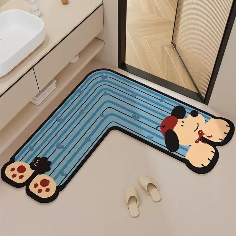 卡通可爱L型硅藻泥地垫家用厨房吸油耐脏脚垫浴室吸水易打理门垫