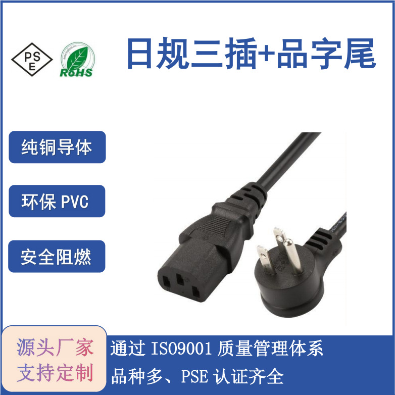 日规电源线PSE认证日标弯头三插加品字尾AC线日本125V插头线