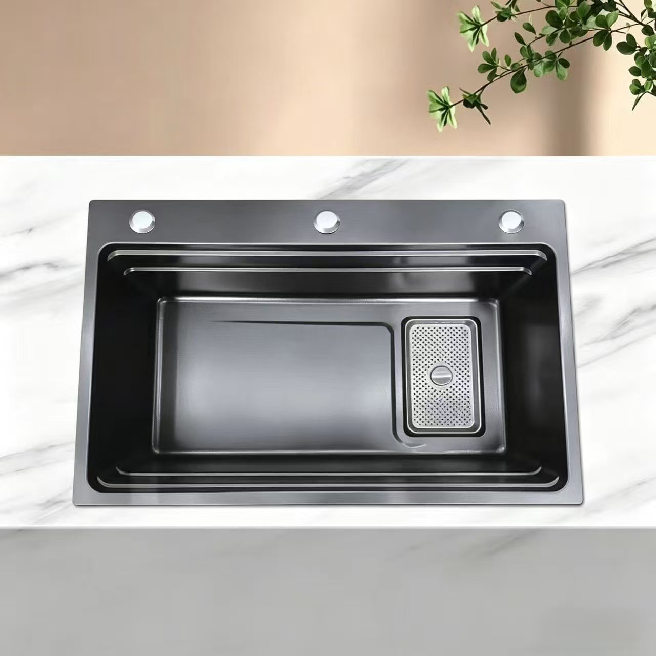 一体多功能304不锈钢黑色大单槽小米粒防刮洗菜池一体洗碗池
