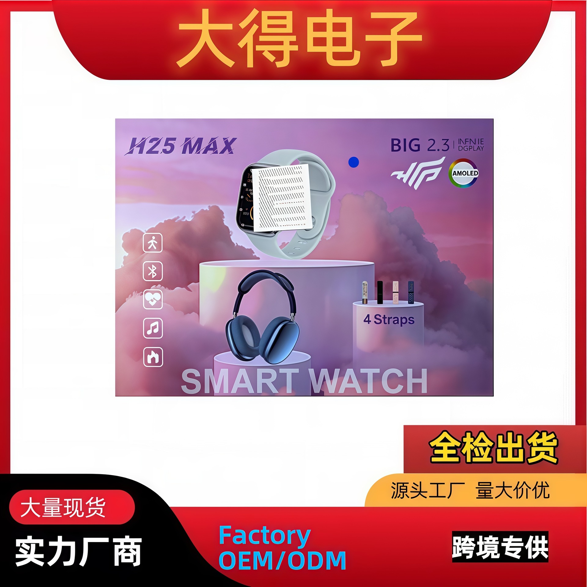 H25max智能手表 带大耳机套装蓝牙通话手表心率运动计步手表工厂