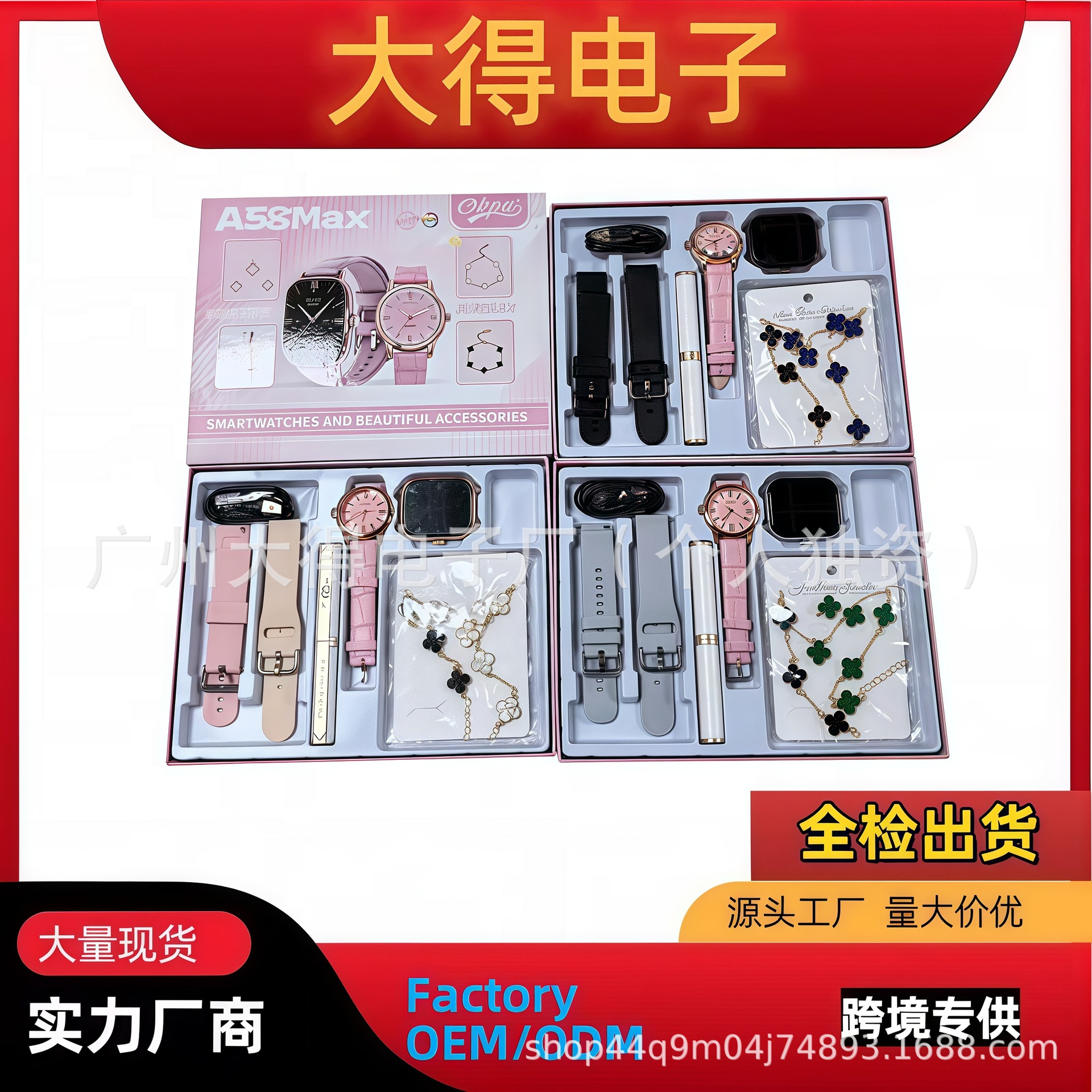 外贸新款A58MAX智能手表女款首饰套装蓝牙通话运动计步健康检测