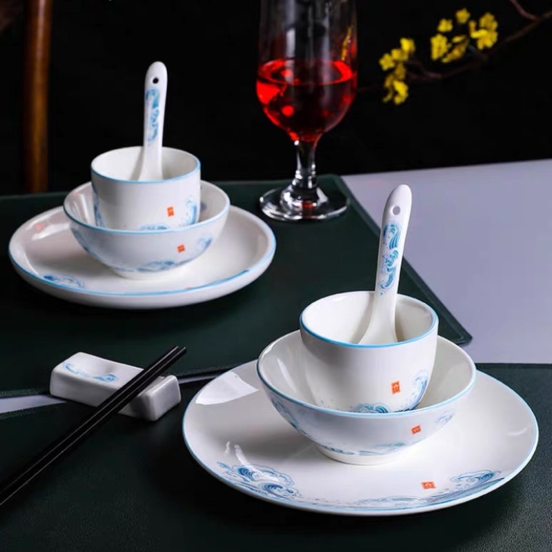 陶瓷酒店餐厅摆台台面饭碗汤碗骨碟茶杯勺子新中式餐具