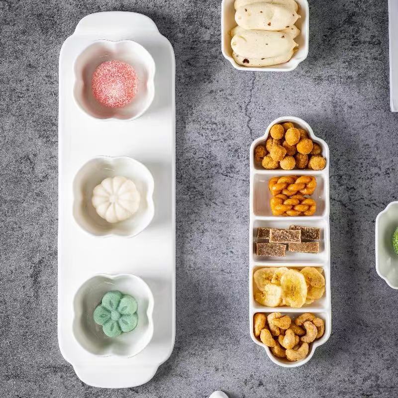 酒店餐厅多格点心盘西餐牛排盘小吃水果摆盘炒菜浅新中式陶瓷餐具