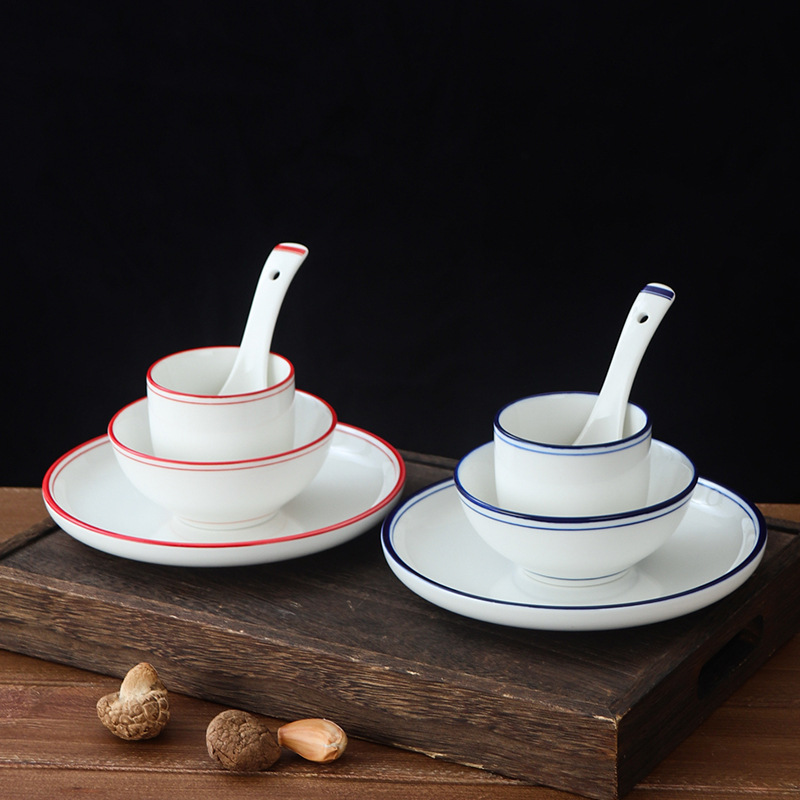 酒店摆台餐具餐厅商用陶瓷碗碟盘汤勺杯子四件套湘菜馆饭店招待用