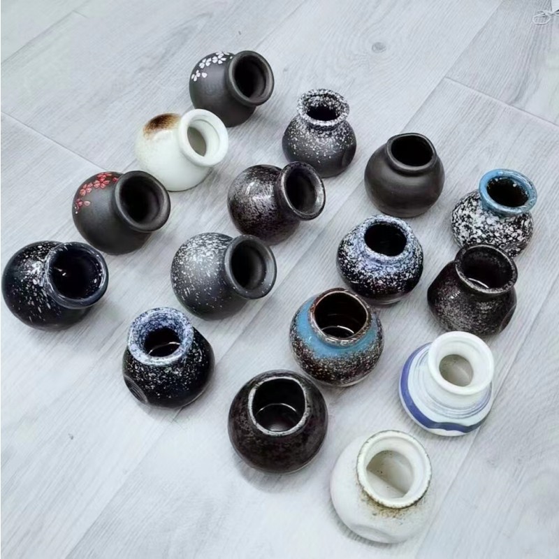 刺身摆盘装饰日式干冰小壶色釉干冰杯鱼生点缀小摆件牙签筒酒壶