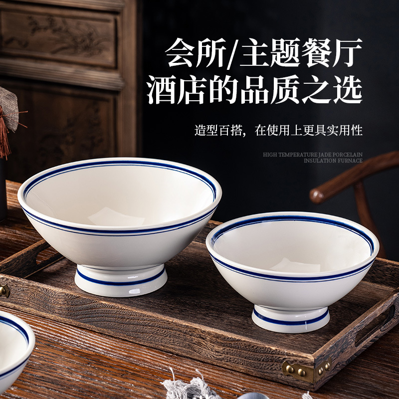 陶瓷面碗湘菜小炒肉碗高脚汤碗农家红烧肉碗复古双线蓝带圈餐具