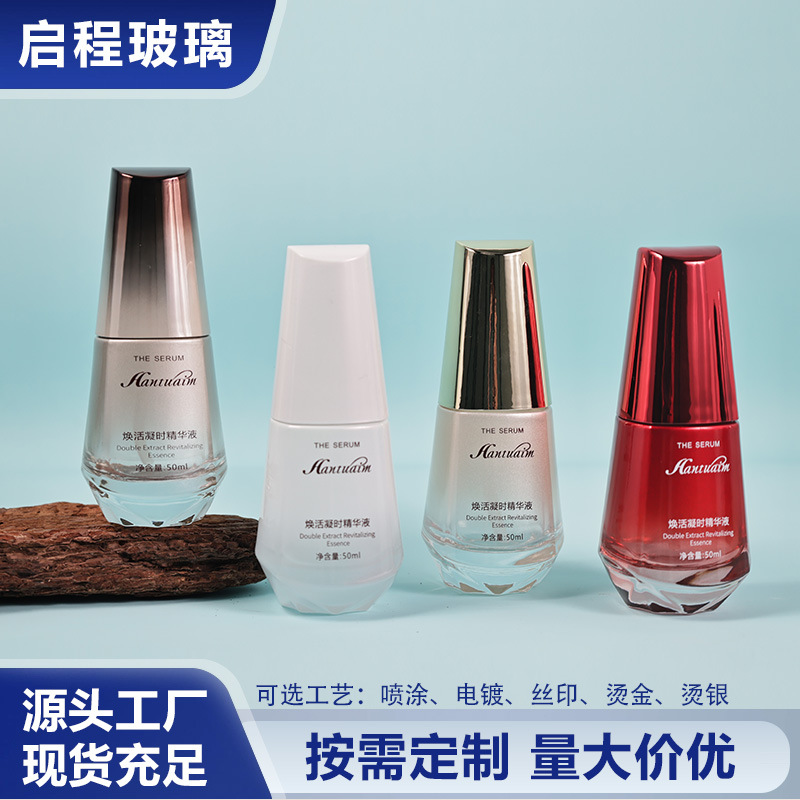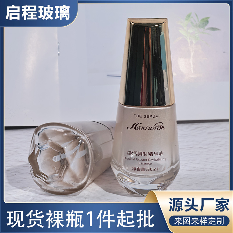 新品圆柱形精华瓶护肤品玻璃瓶50ml水乳瓶按压乳液瓶化妆品分装瓶
