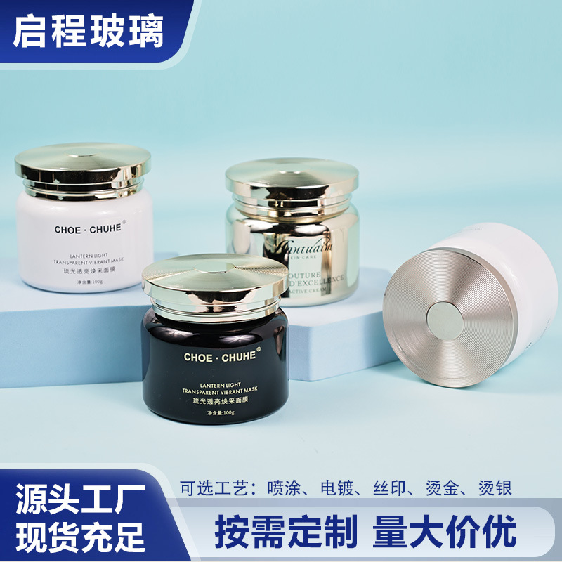 新款化妆品螺旋盖护肤品玻璃瓶100g膏霜瓶50g内胆面霜瓶分装空瓶