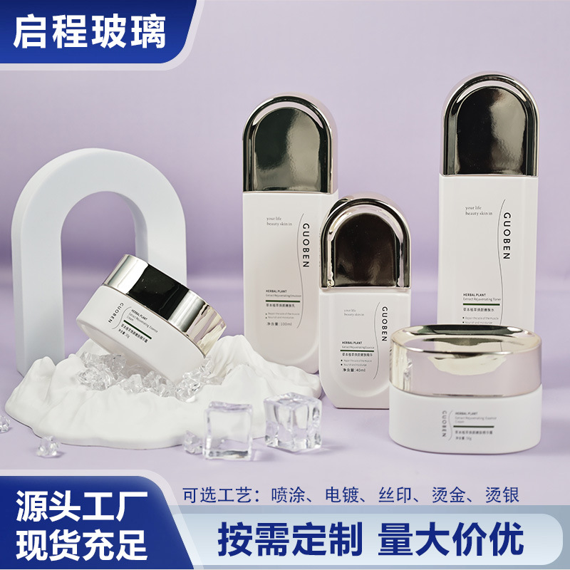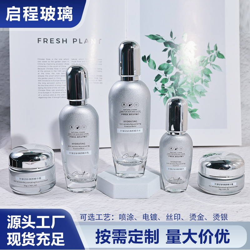 高端现货套装瓶40-120ml水乳瓶精华液瓶30-50g膏霜瓶护肤品玻璃瓶