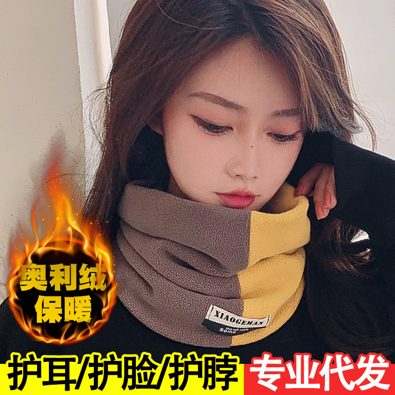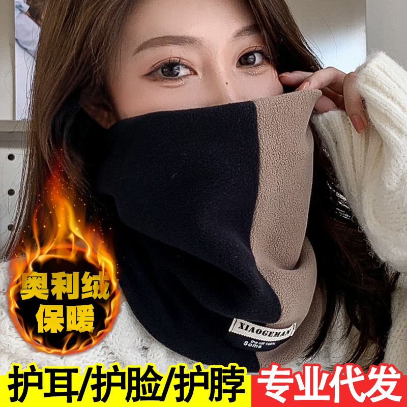 围脖秋冬双层拼色奥利绒加厚保暖脖套户外时尚男女款套头潮流新款