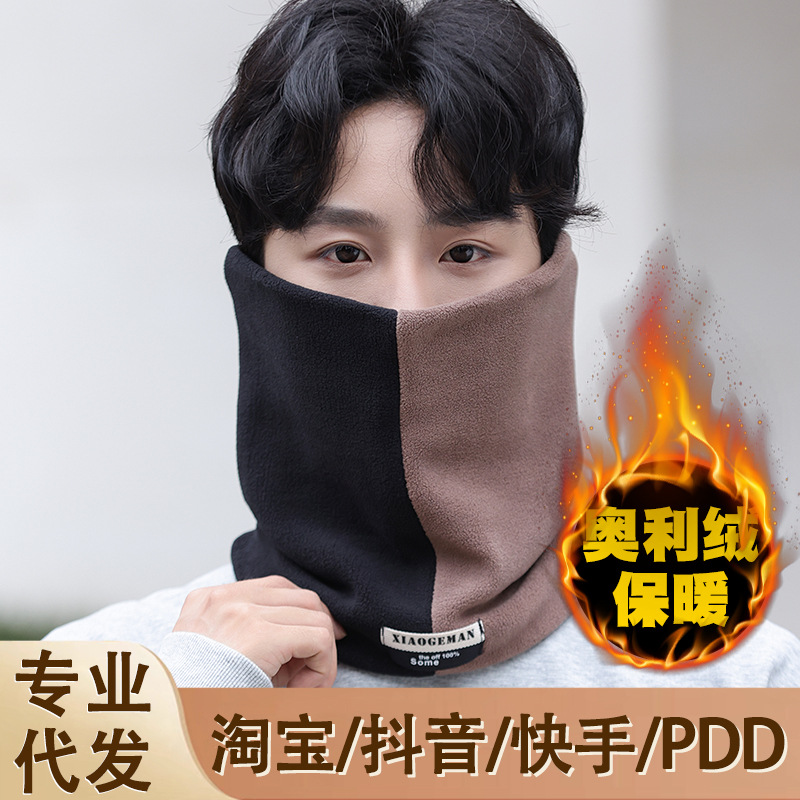 围脖2024秋冬双层奥利绒加厚保暖脖套户外时尚男女款拼色套头围巾