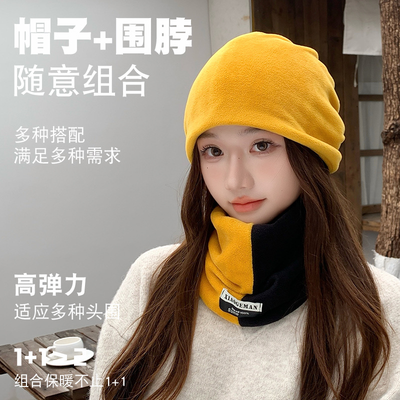2024新款百变围脖堆堆帽韩版时尚男女士秋冬季加厚月子帽护颈防寒
