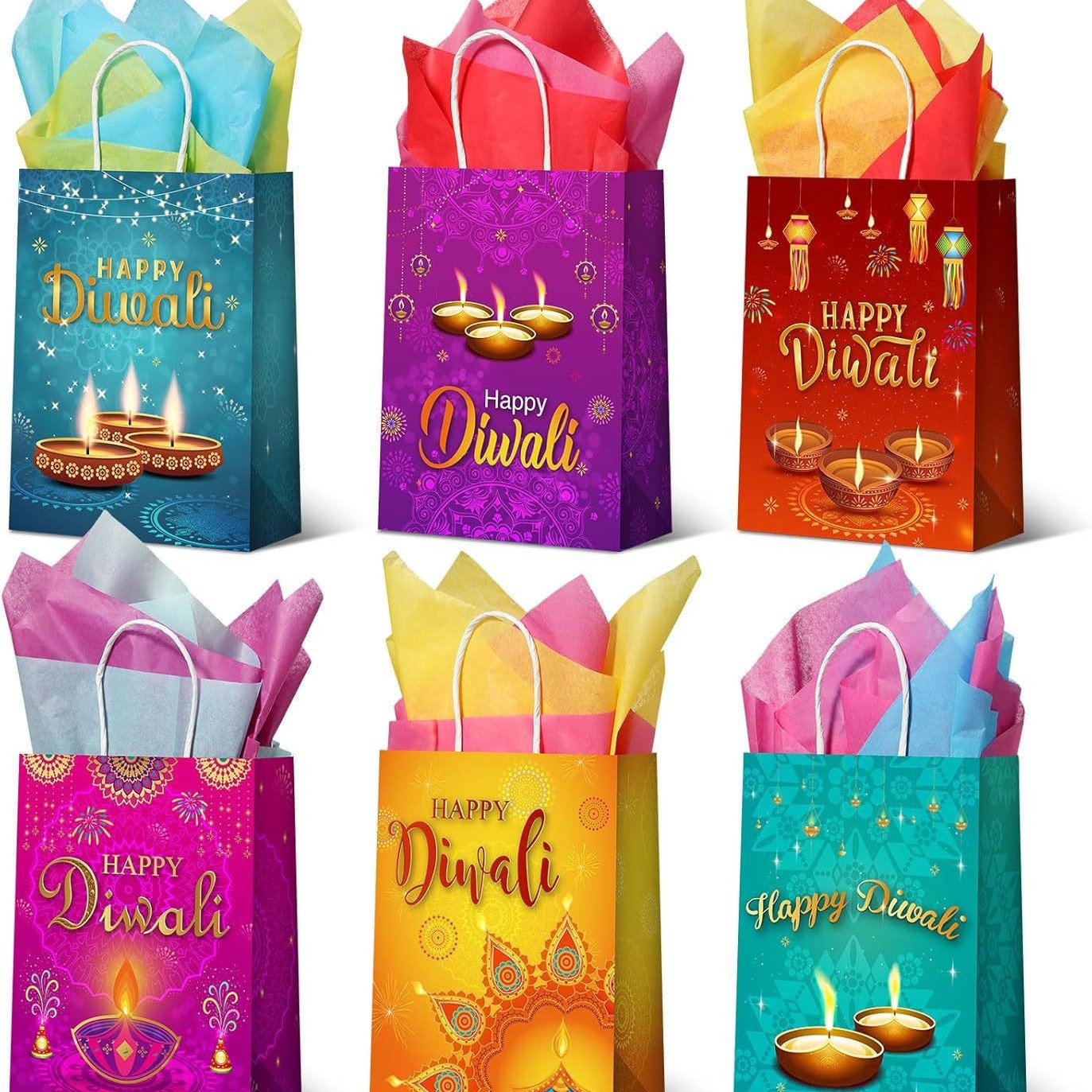 印度排灯节礼品纸袋节日生日派对礼品零食糖果袋适用于乔迁、婚礼