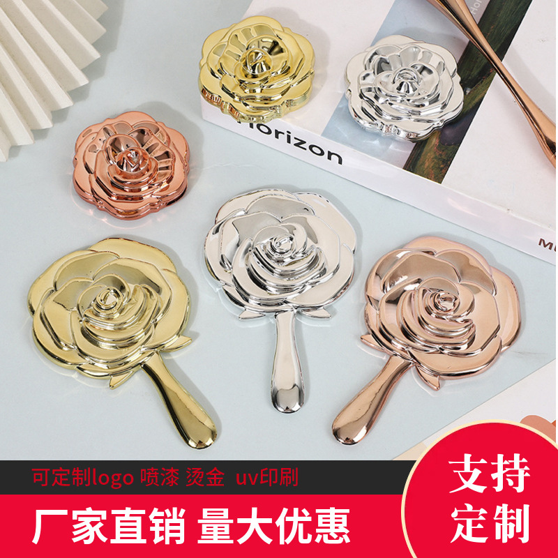 复古玫瑰花小镜子便携包包手柄化妆镜创意塑料镜美容梳妆镜子批发