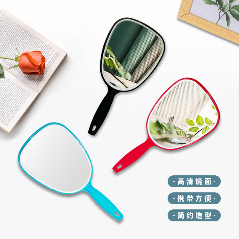 小号跨境塑料透明手持双面镜化妆镜 双面小镜子简约便携圆形镜子