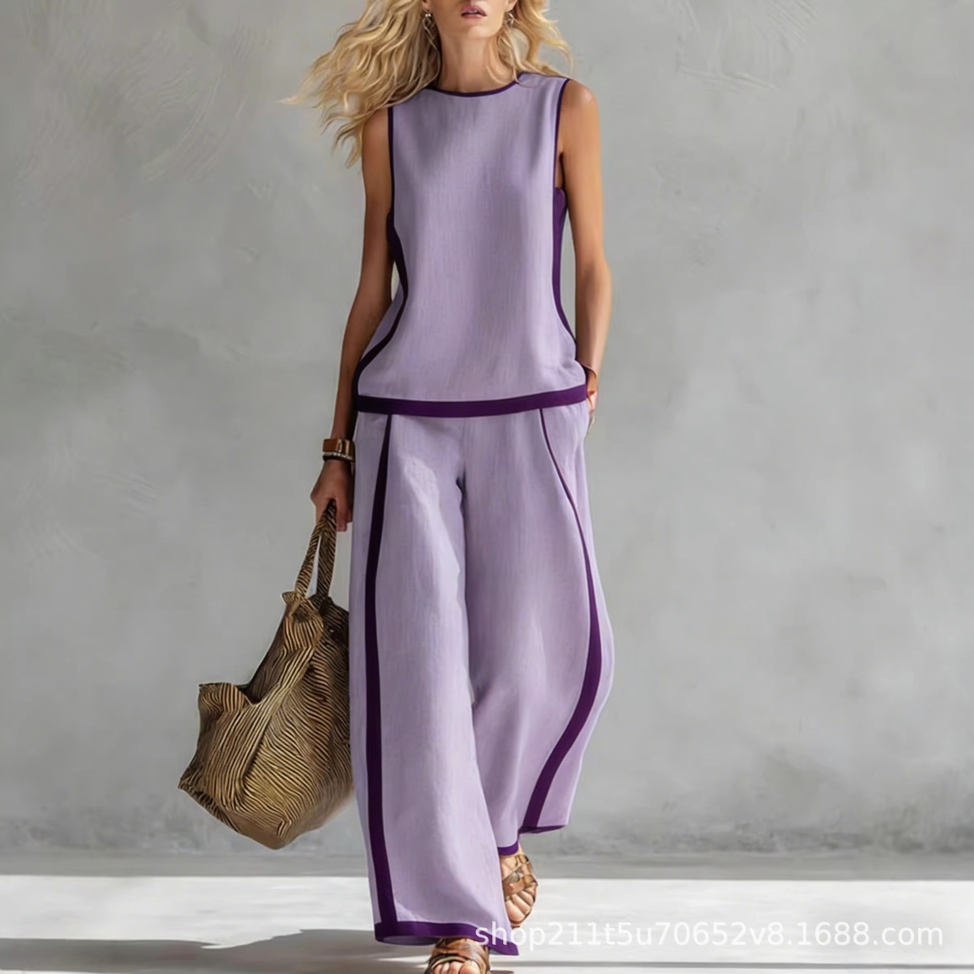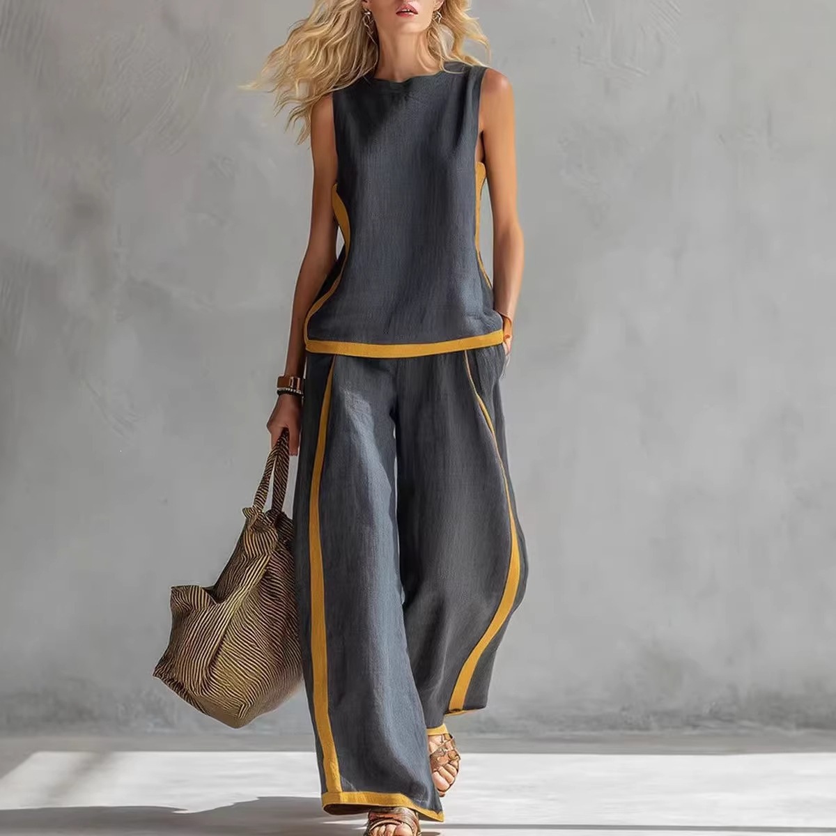 外贸跨境运动美背瑜伽螺纹吊带修身显瘦内衣防下垂上衣内裤头套装