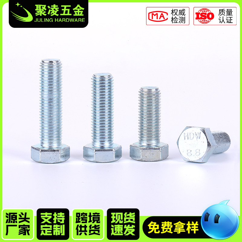镀锌外六角螺栓现货全牙外六角加长螺丝钉高强度镀锌外六角螺丝