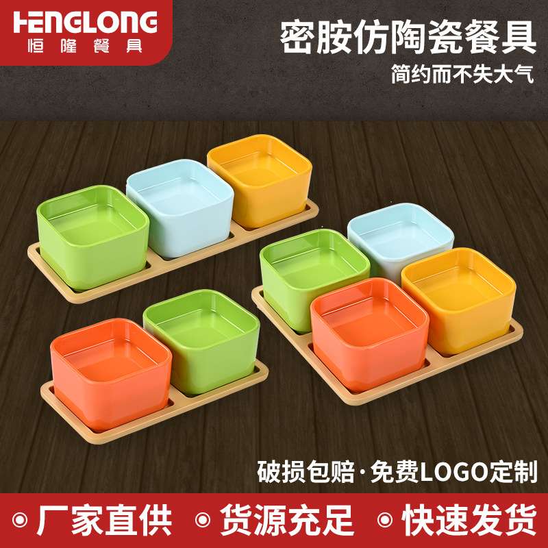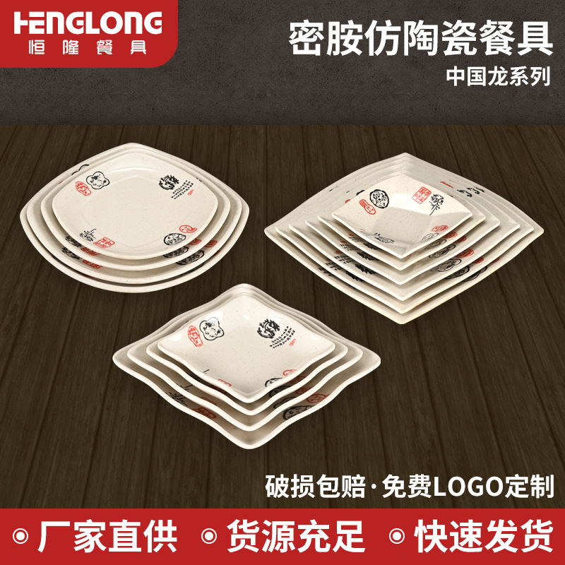 厂家直供密胺盘子商用面馆餐厅正方碟防摔塑料盘火锅烧烤店配菜盘