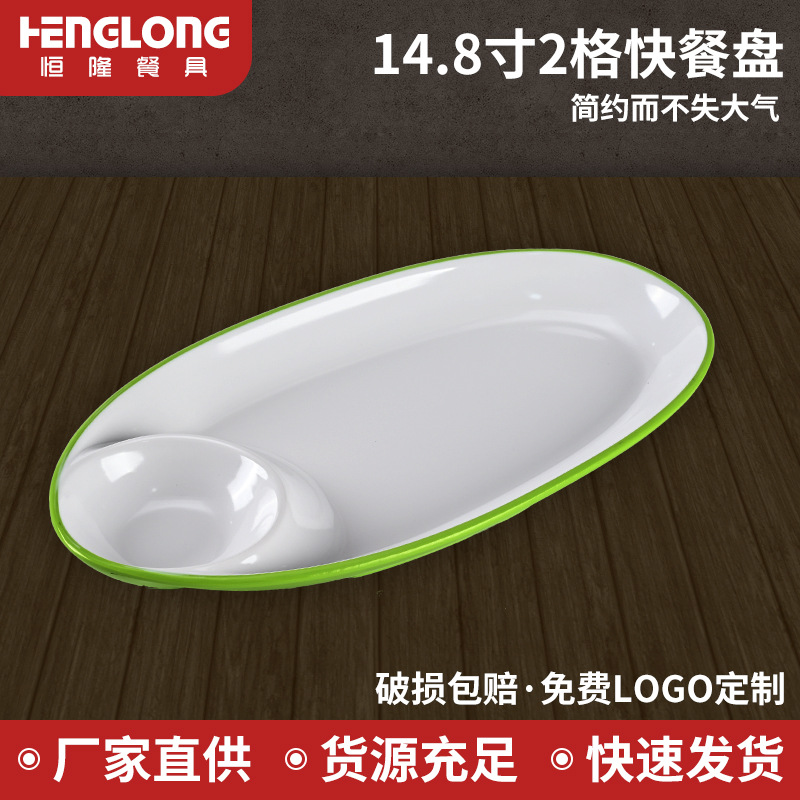 大米先生同款两格分格密胺称重中式连锁快餐商用餐盘仿瓷加厚取餐