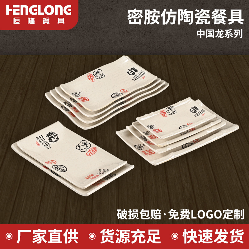 长方盘商用密胺餐具仿瓷火锅菜盘盘子早餐店肠粉碟烧烤塑料盘子