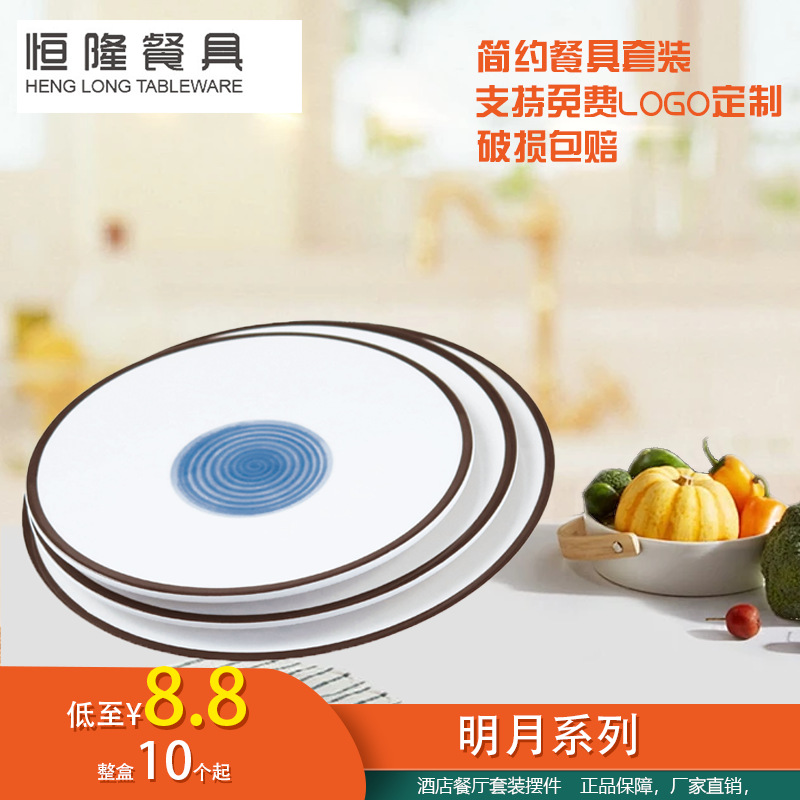 纯色密胺仿瓷圆形餐具简约套装家用餐厅商用酒店摆台多规格小碗碟