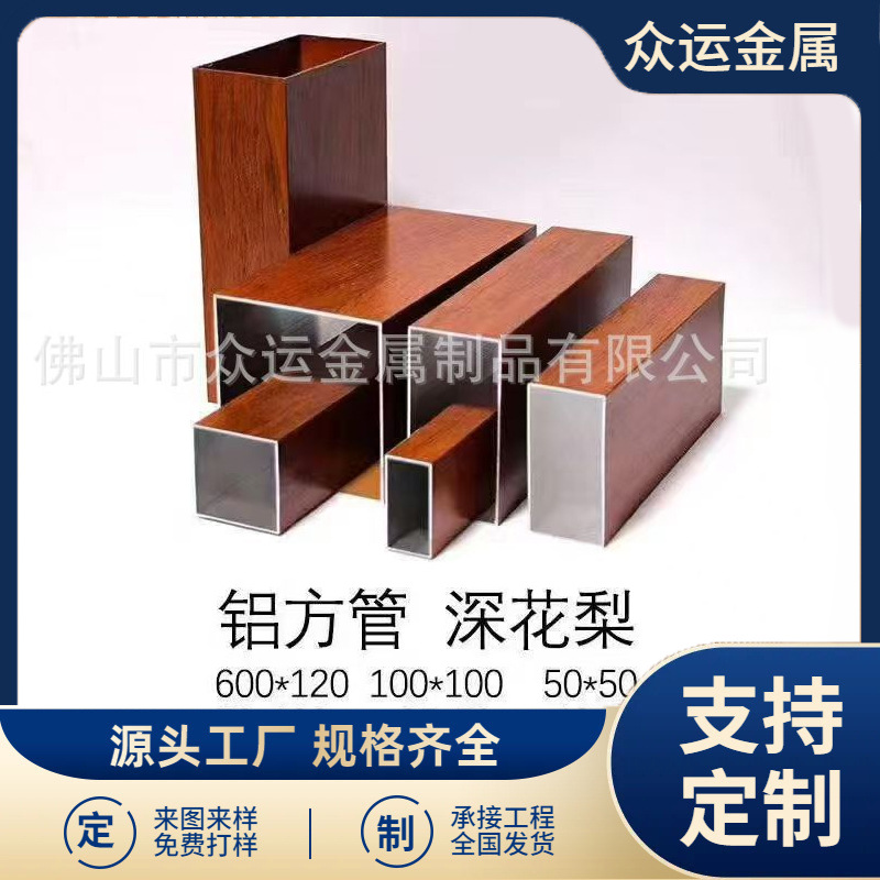 佛山木纹铝方管现货铝合金方通铁方通吊顶格栅四方门头隔断天花管
