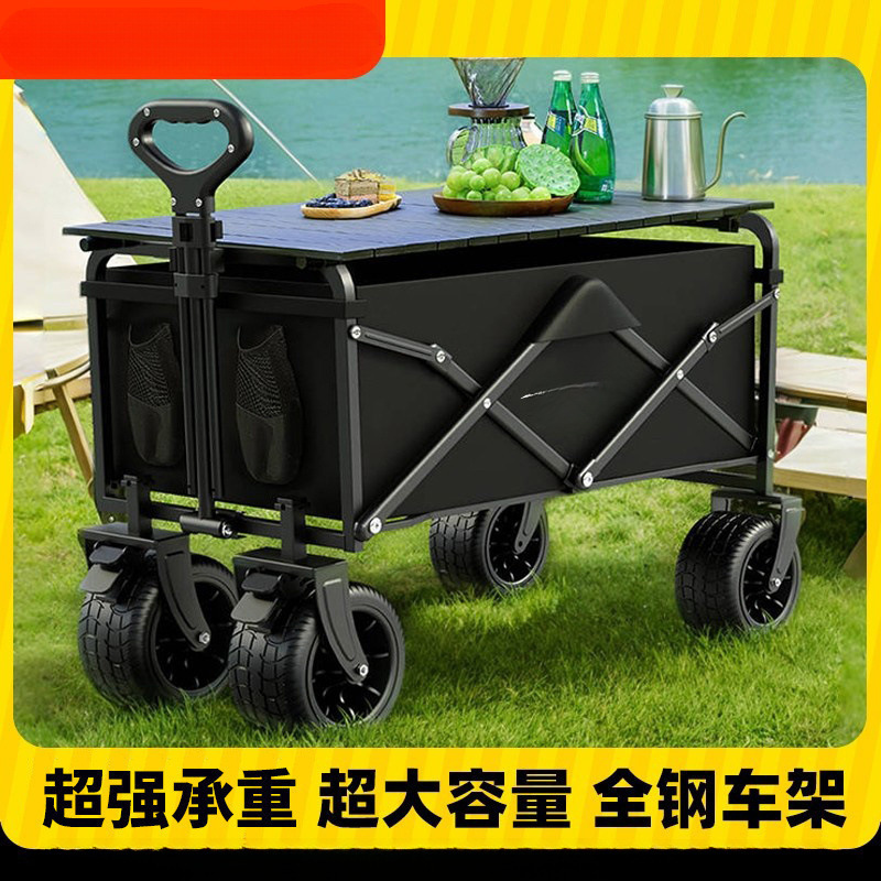 露营小推车可折叠户外手推车野餐车便携营地拖车拉杆野营车摆摊车